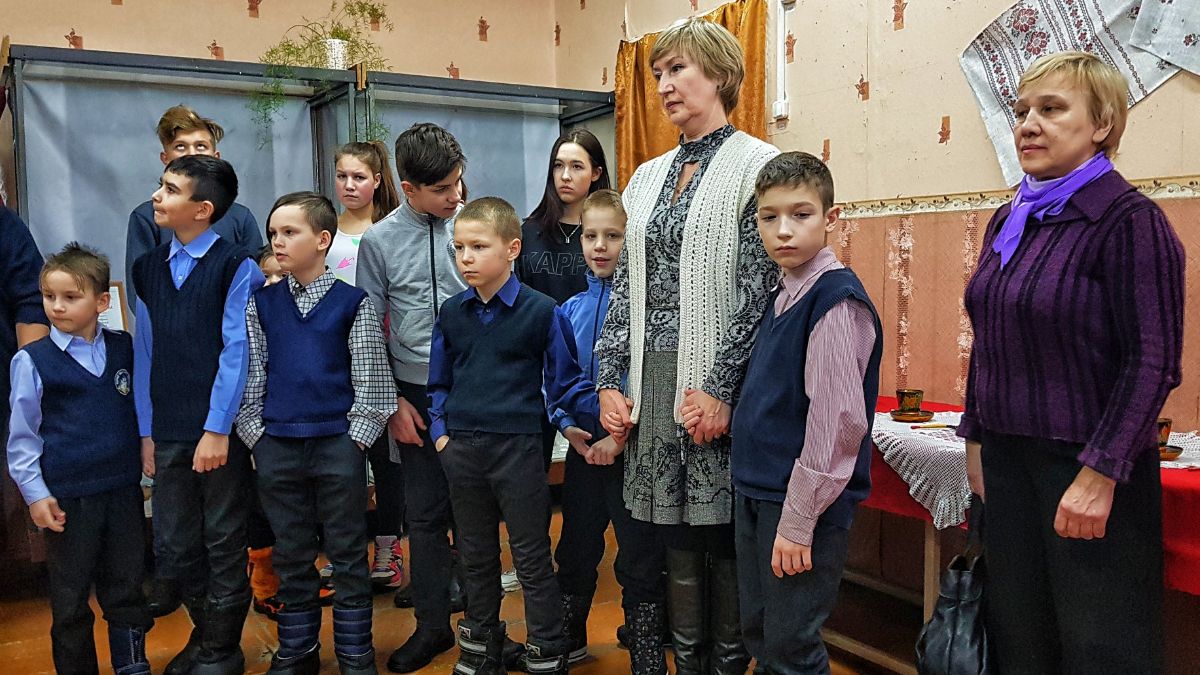 4 класс Опытнопольской школы приехали на общий обзор и кукольный спектакль "Болтливая баба"